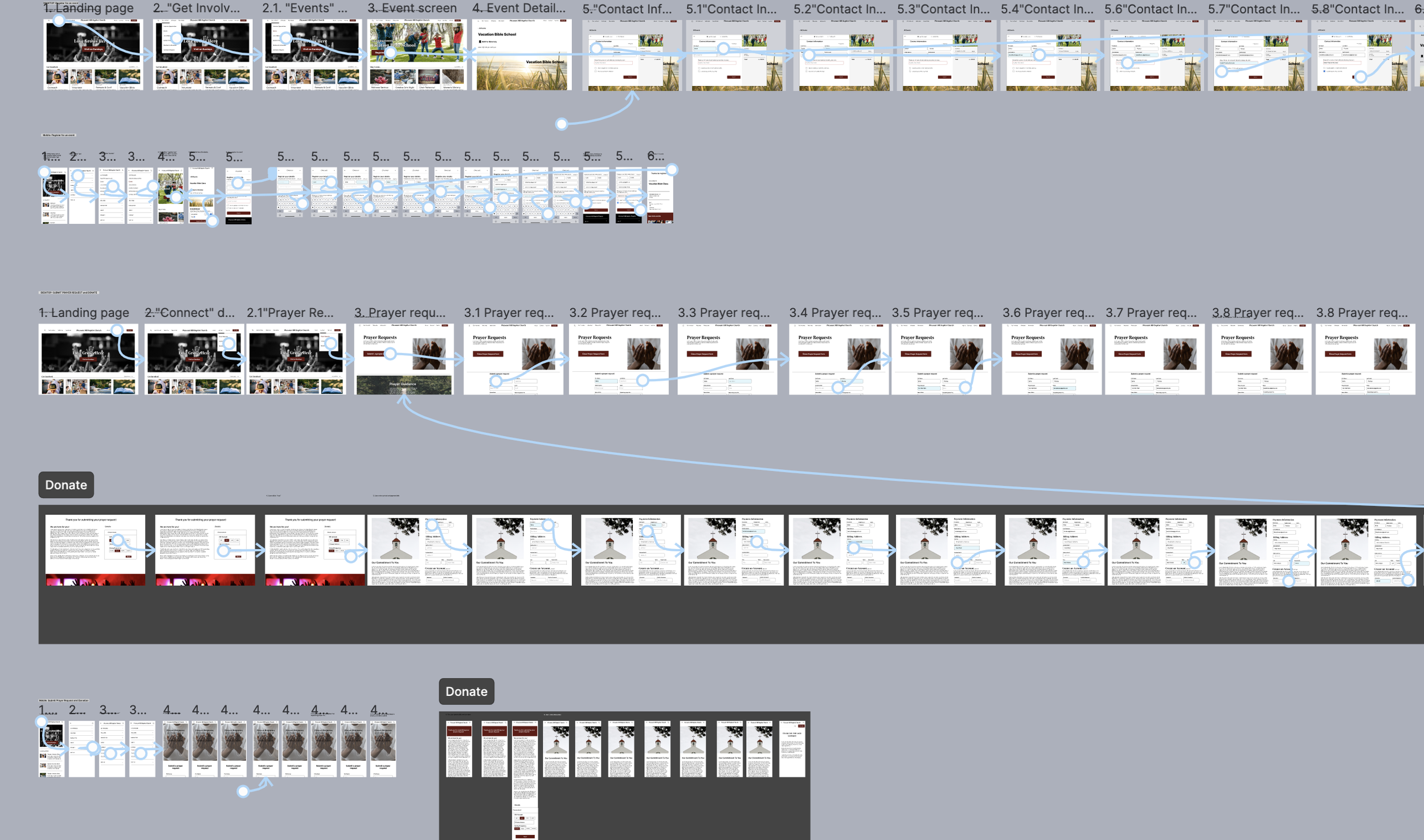 The user flows guided users like David and Maria through accessing information about the church, engaging with community events, and making online donations. For example: